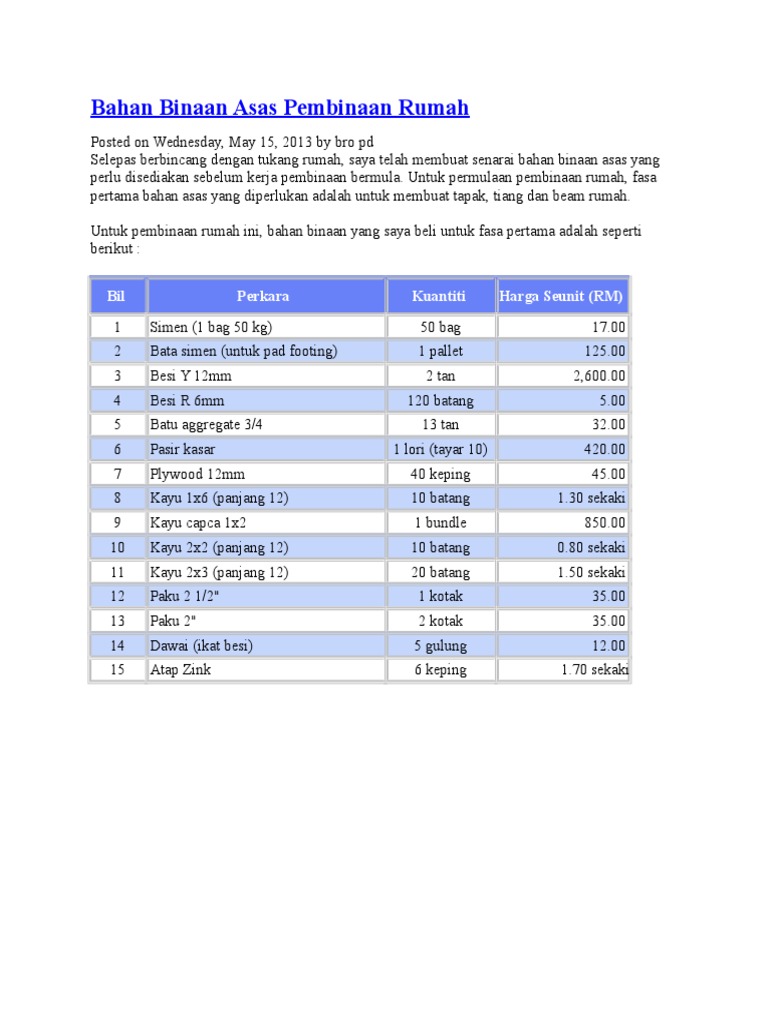 Upah bina kaki lima 1ka panjang rm1100 6. Rumah ini saya buat berkembar jadi luas lantai ialah 1320k2. Harga barang binaan naik hingga 80 peratus - Pemaju IBS Harga barang binaan naik 100 kontraktor tersepit - Tun Carlos Peningkatan harga barangan keperluan utama BINA RUMAH 2021 Sebut Harga Contoh Quotation Renovation Rumah - Fundacionfaroccr Senarai Harga Barang Binaan 2019 - Fundacionfaroccr.